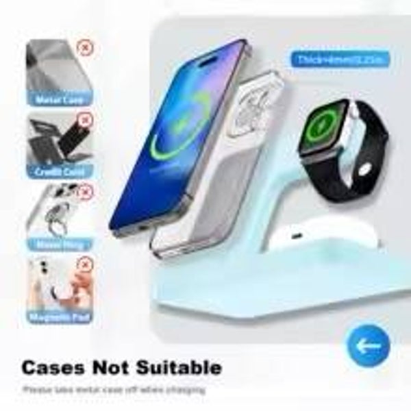 Caricatore Wireless Magnetico 15W 3 in 1, Stazione di Ricarica Rapida Pieghevole da Viaggio per Magsafe iPhone 17/16/15/14, Apple Watch, AirPods Pro